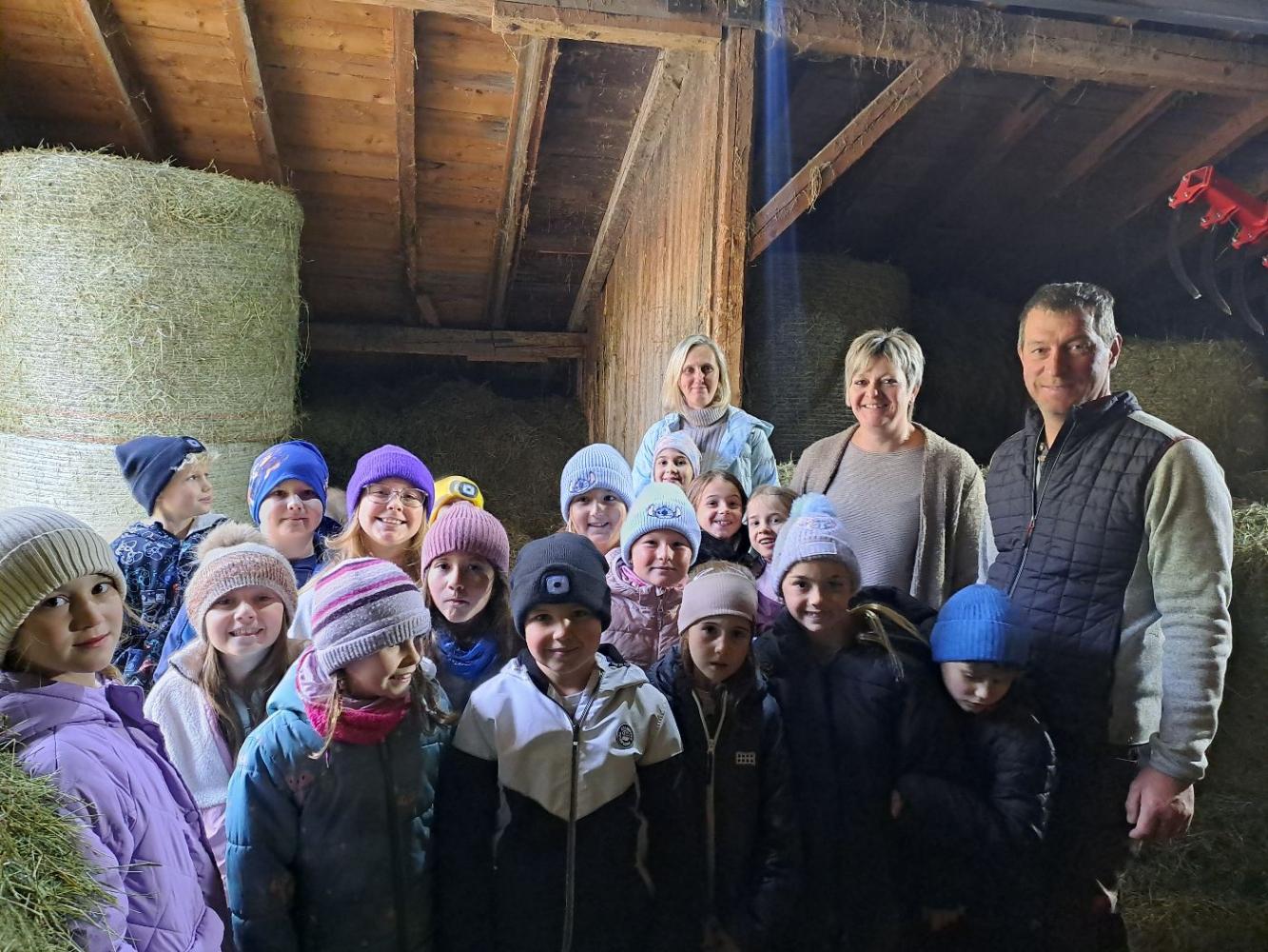 Anlässlich des "Welthungertages" am 16. Oktober luden uns die Ortsbäuerinnen Heike und Bianca zur Besichtigung des Bauernhofes von Bianca und Ulrich ein. Zwischen Pferden, Kühen und einem Sprung ins Heu lernten die Kinder viel Wissenswertes über den "Weg vom Gras zur Milch". Vielen Dank an Bianca, Ulrich und Heike!