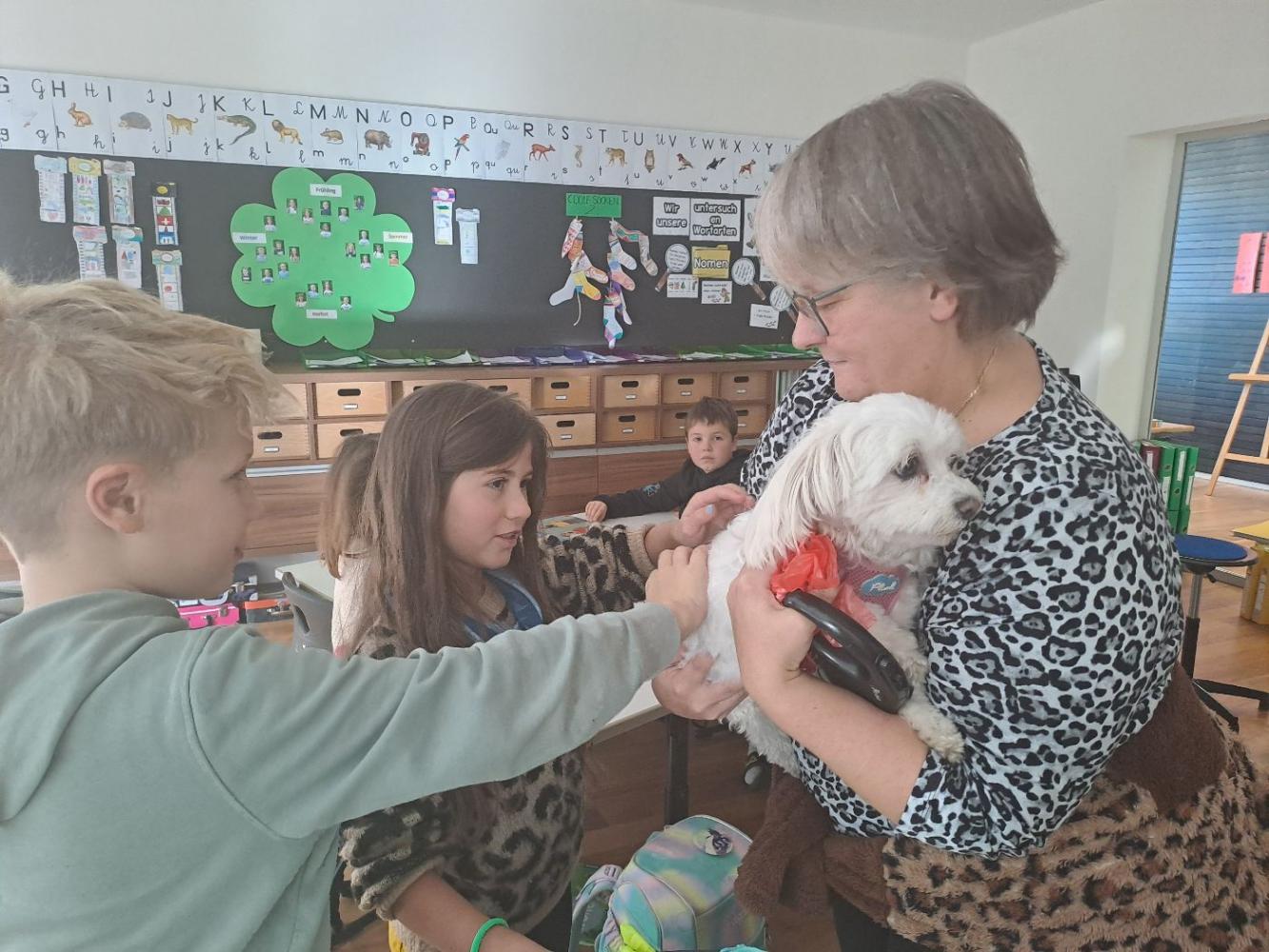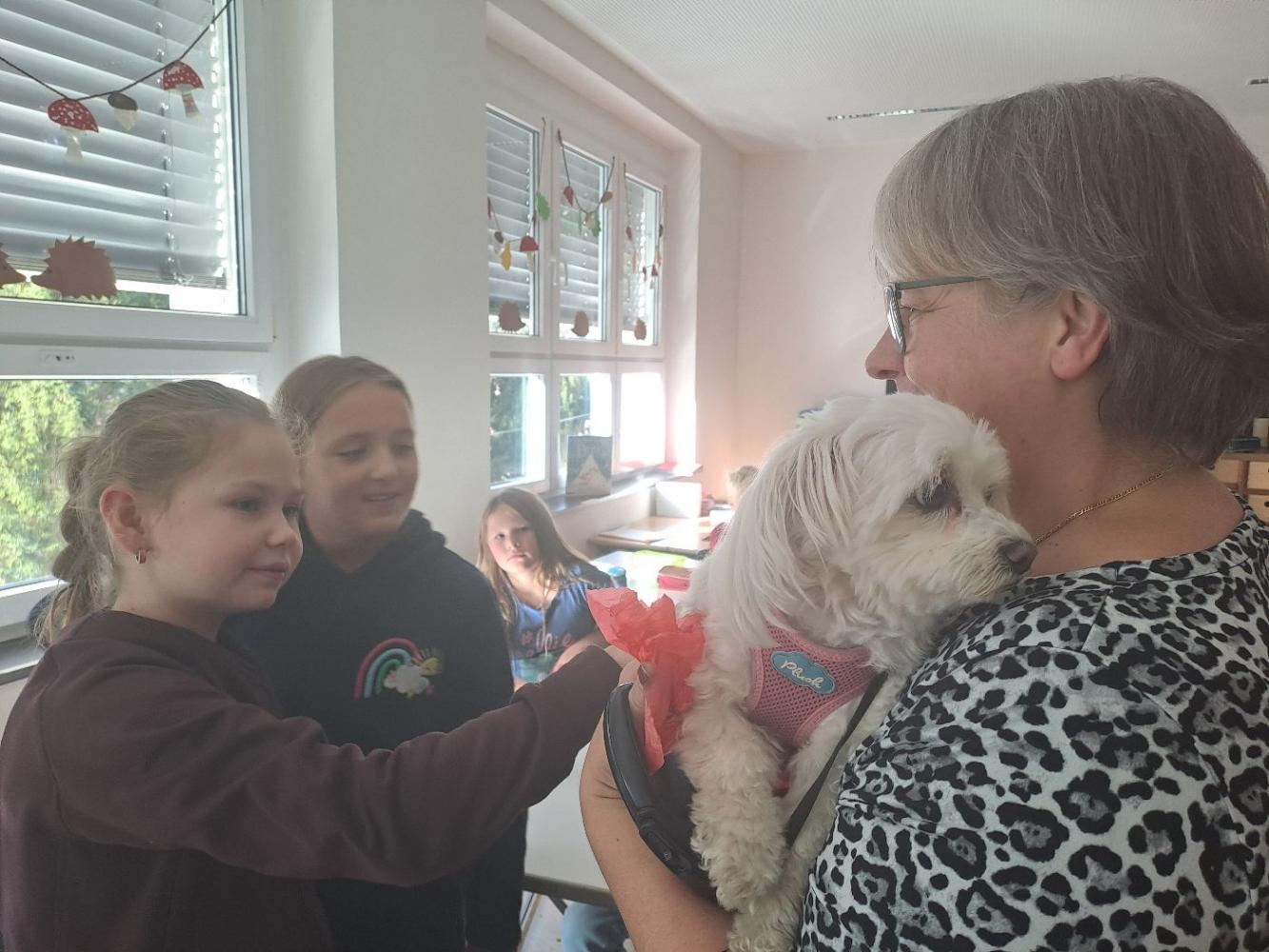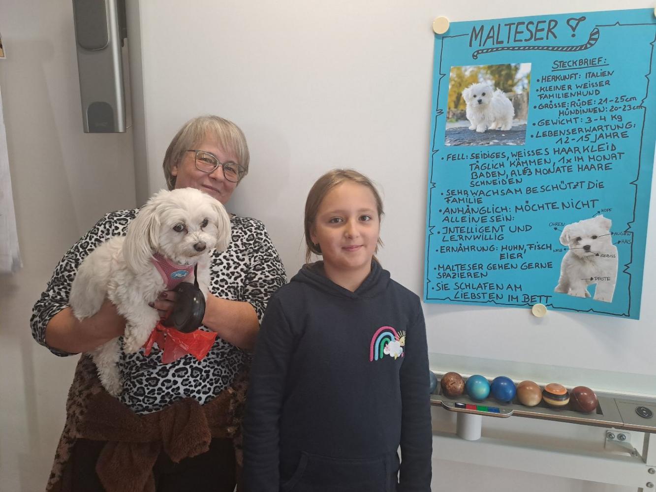 Am Donnerstag, 13.11., lud Anna ihre Oma Sandra und den Malteserhund Maja zu uns in den Sachunterricht ein. Sie gab Einblicke in die Haltung und Erziehung von Maltesern.