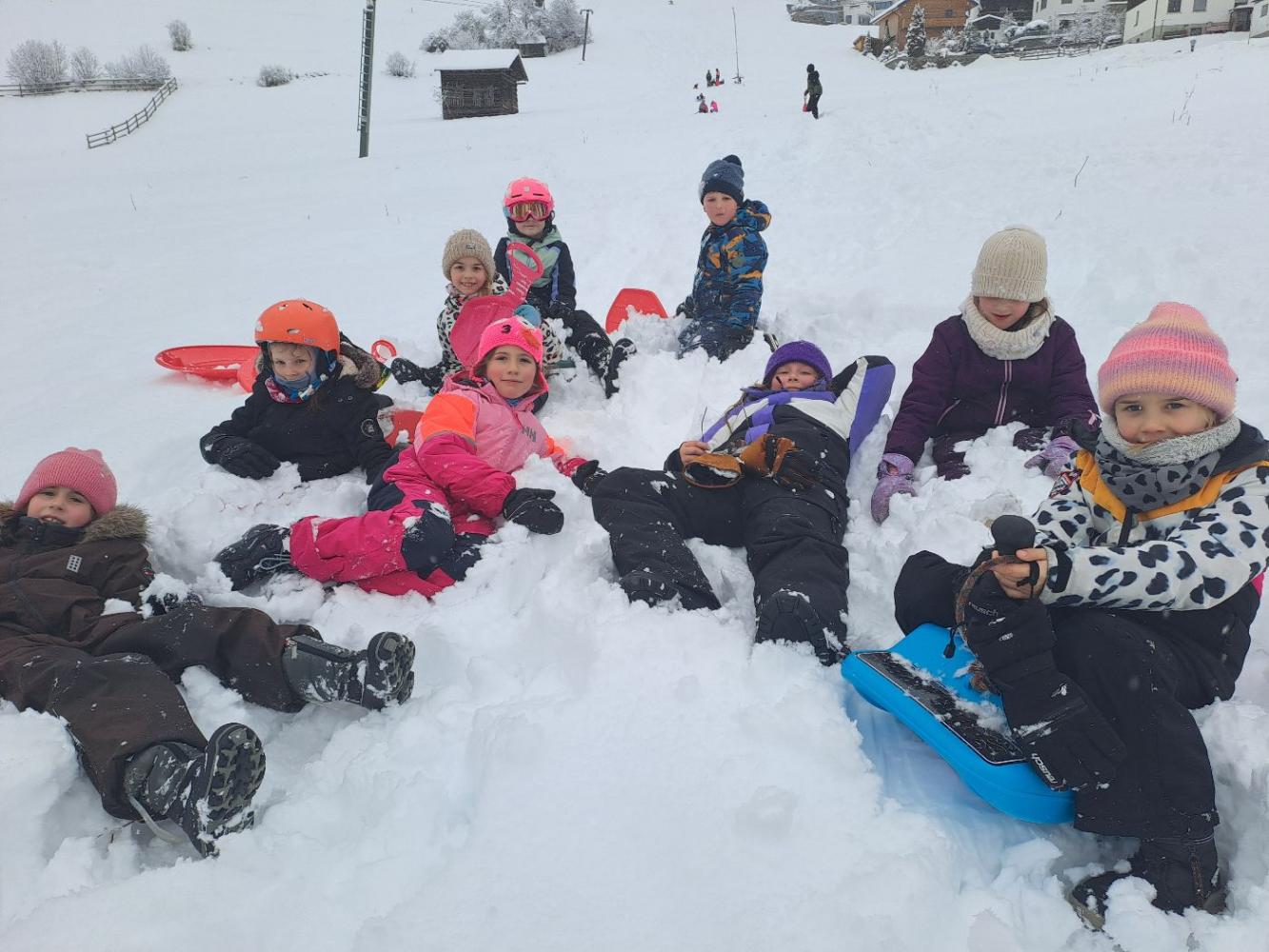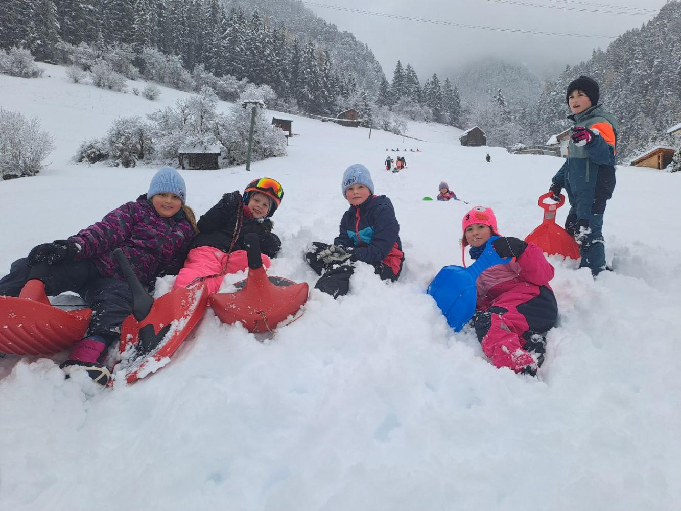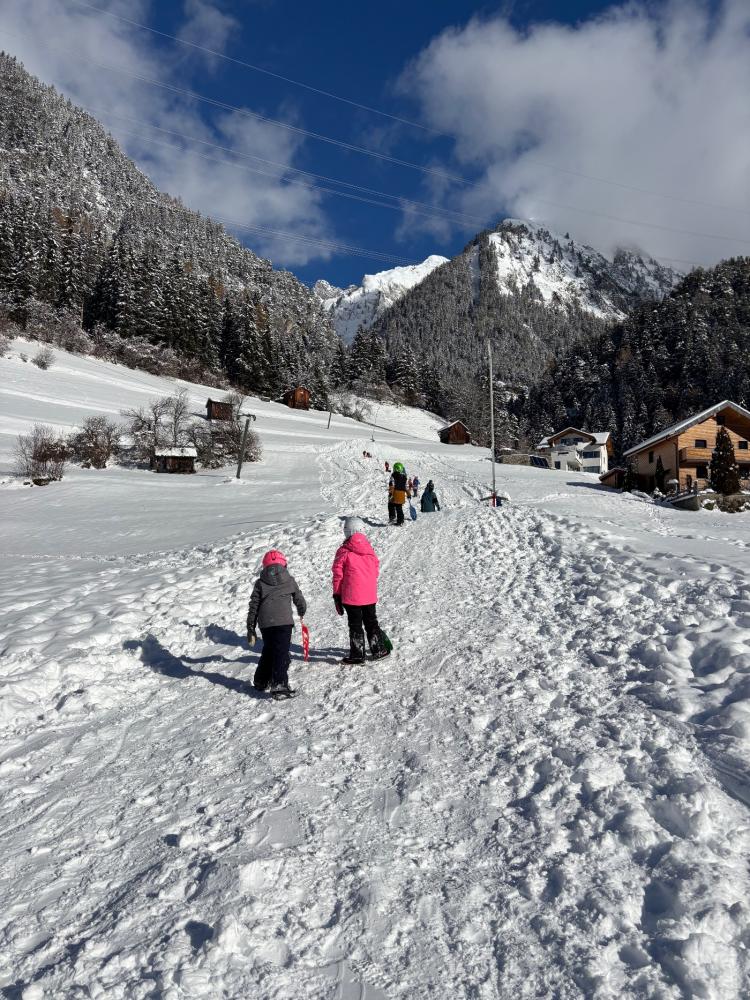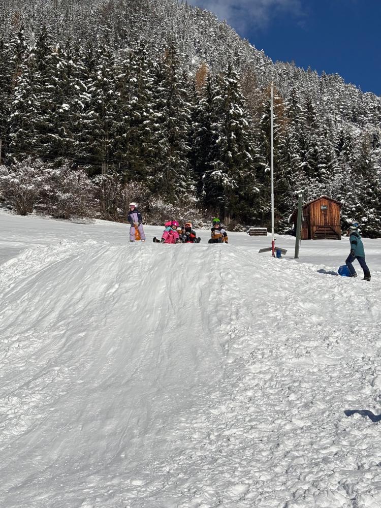 Mit Begeisterung packten wir unsere Rutschteller und Bobs aus und tollten vergnügt im ersten Schnee der Saison.