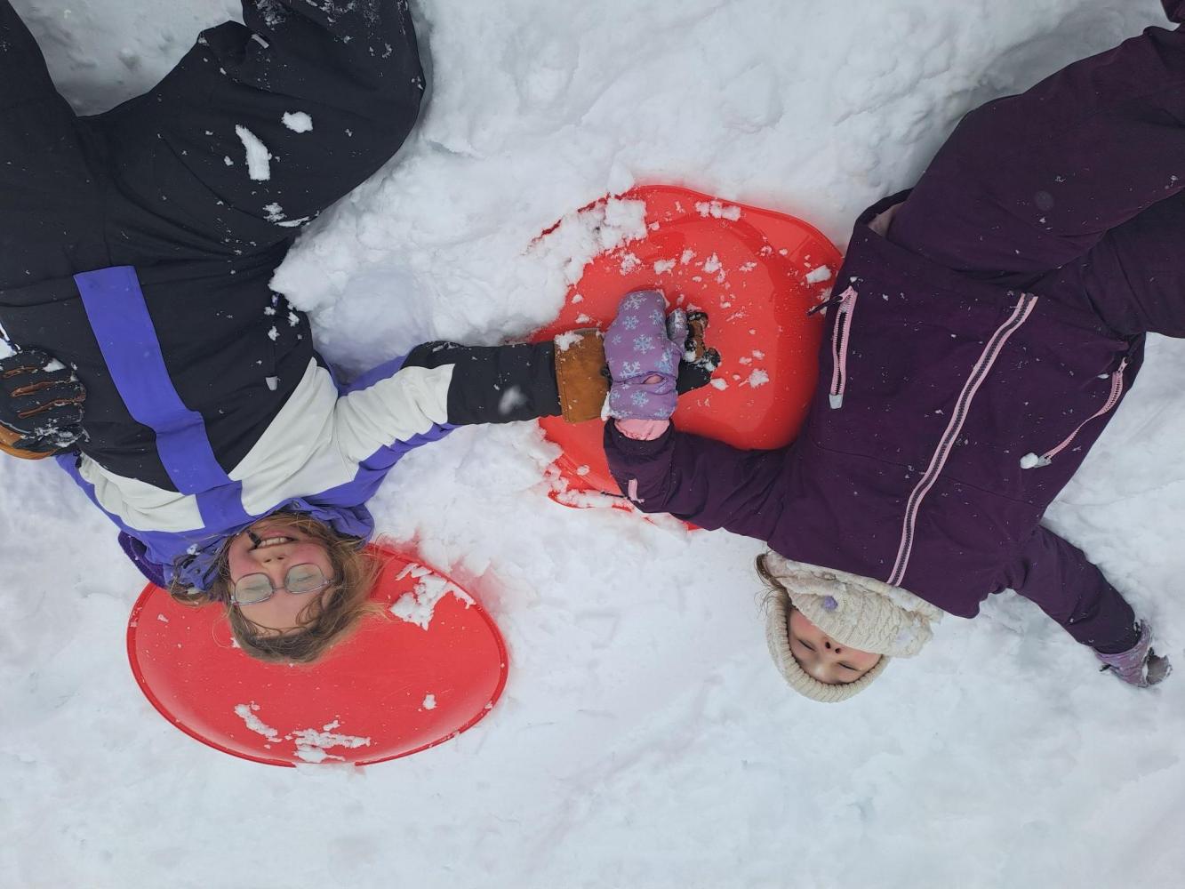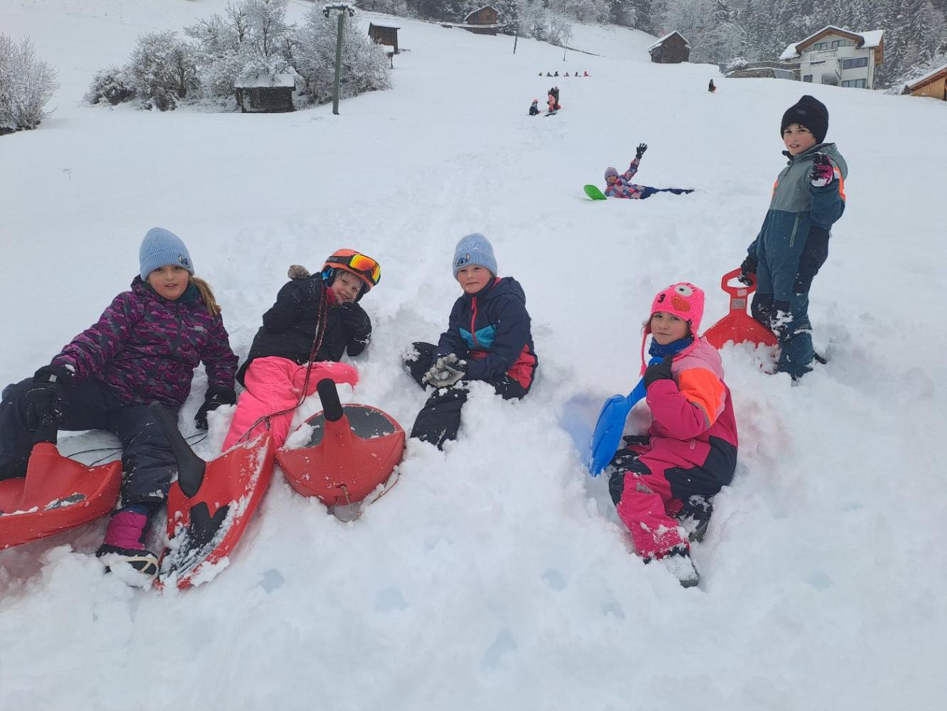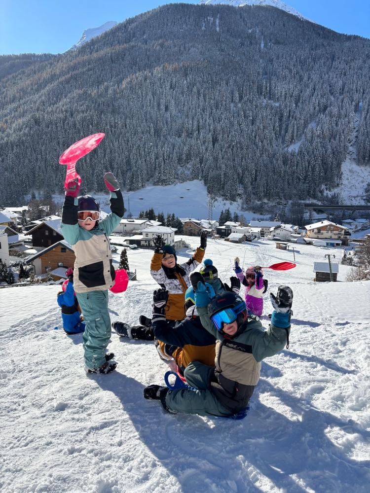 Mit Begeisterung packten wir unsere Rutschteller und Bobs aus und tollten vergnügt im ersten Schnee der Saison.