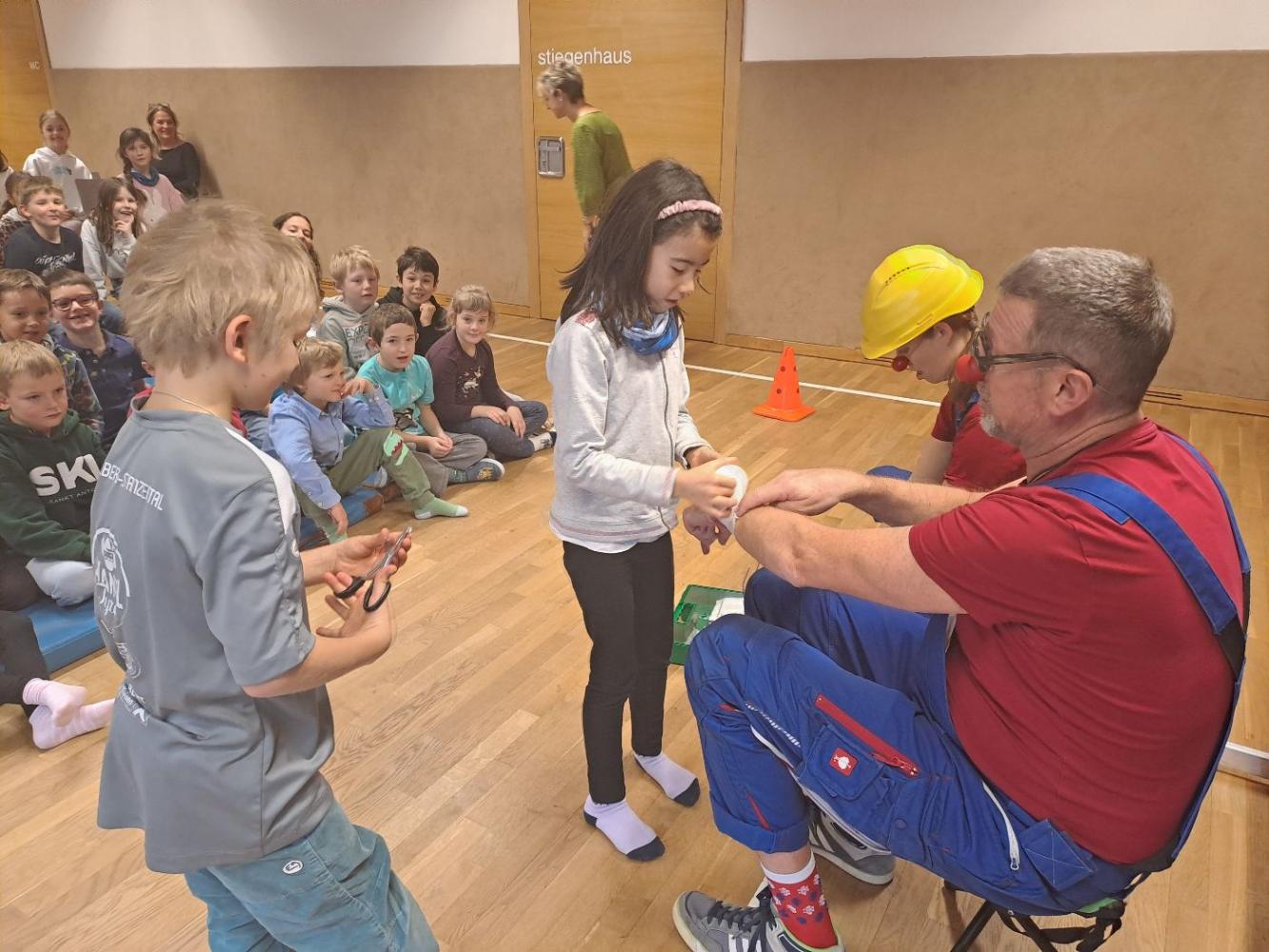Oh Schreck: Ein Schüler ist verletzt? Was tun? Am 28. Februar wurden die Lehrer:innen von Thomas Rieser vom ÖJRK genau auf solche Situationen vorbereitet.
